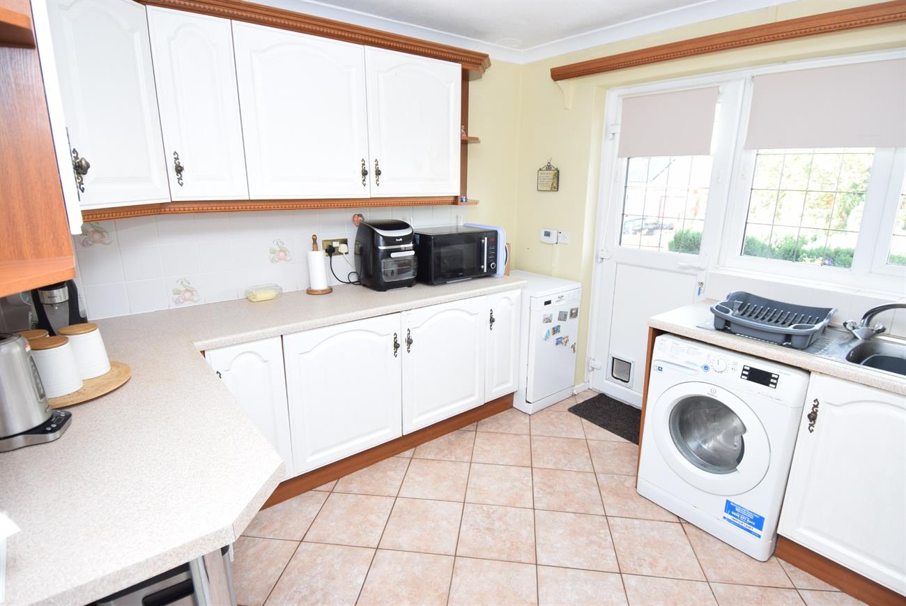 Fitted with a range of base and wall units, preparation work surfaces, stainless steel sink unit with mixer tap, built-in oven and hob, plumbing for washing machine, tiled flooring, radiator, window to the side elevation, door giving access to the side of the property.