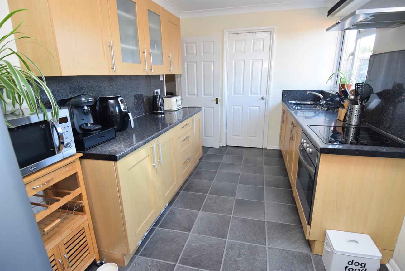 A good size kitchen having a range of base and wall mounted units, preparation work surfaces, one and a half bowl sink unit with mixer tap, electric oven & hob with cooker hood over, window giving views to the rear of the property, plumbing for washing machine, storage cupboard, electric heater, door to the rear garden.