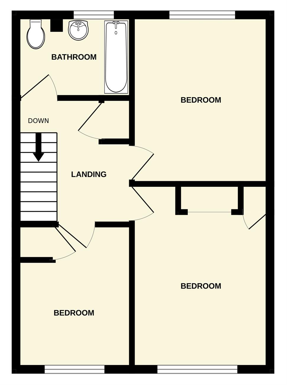 Comprising of bath with electric shower over, wash hand basin, W.C., window, electric wall heater.