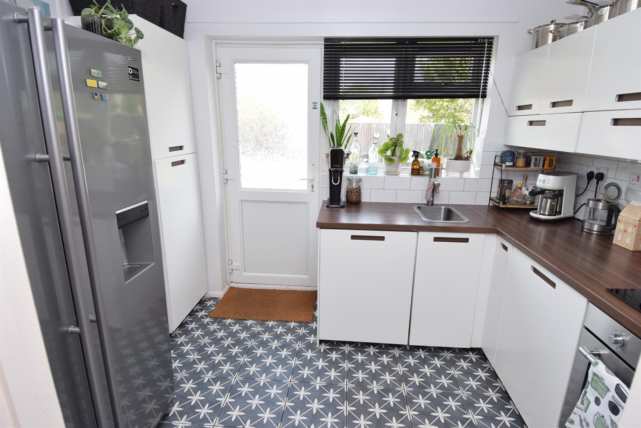 Fitted with a range of base and wall units, preparation work surface, stainless steel sink with mixer tap, integrated dishwasher and washing machine, fitted electric hob, built-in electric oven, radiator, window to the rear elevation, door giving access to the rear garden.