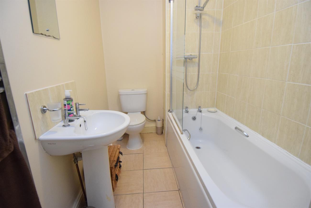 Comprising of bath with shower over with shower screen, wash hand basin, W.C., ladder rack style radiator, extractor fan