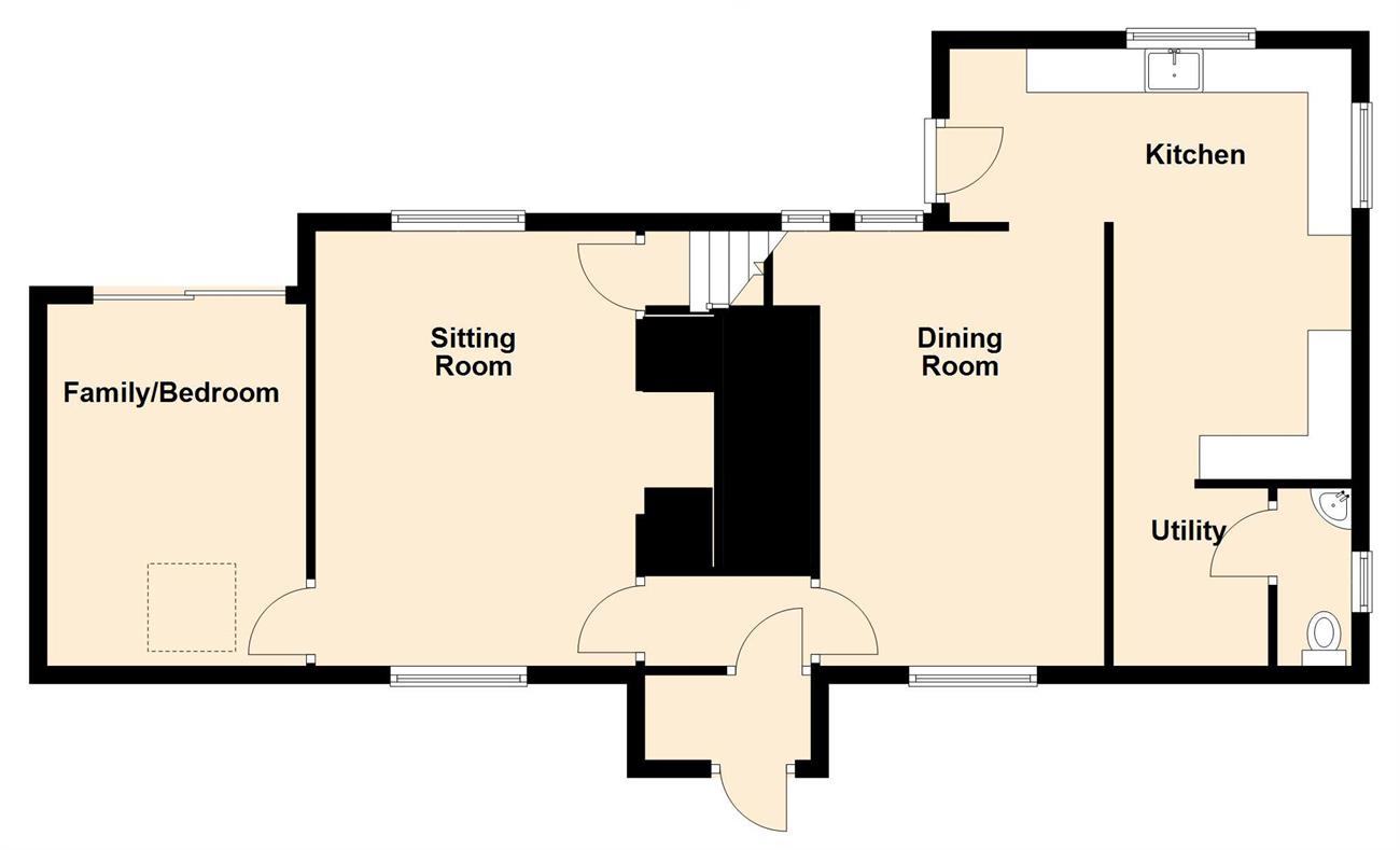 Exposed stonework wall creating a rustic appearance, feature fireplace, exposed beams, dual aspect with window to the front elevation and two windows to the rear elevation, built-in base storage cupboard, radiator.
