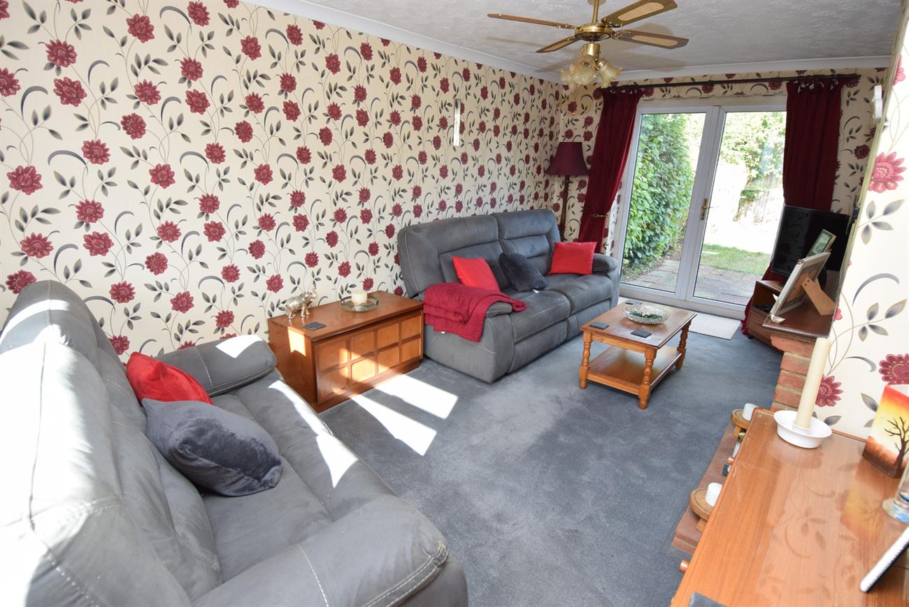 To the front of the house the open plan garden is mainly laid to lawn with a driveway to the side offering parking. The rear garden has patio, lawn, various shrubs and garden shed.