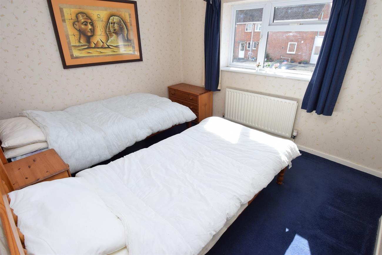 A dual aspect room with window to the front elevation and window to the rear elevation, radiator, built-in cupboard.