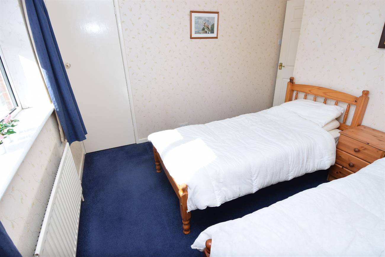 Comprising of bath with Mira shower over, wash hand basin, W.C., radiator, window, linen cupboard with radiator and slatted shelving.