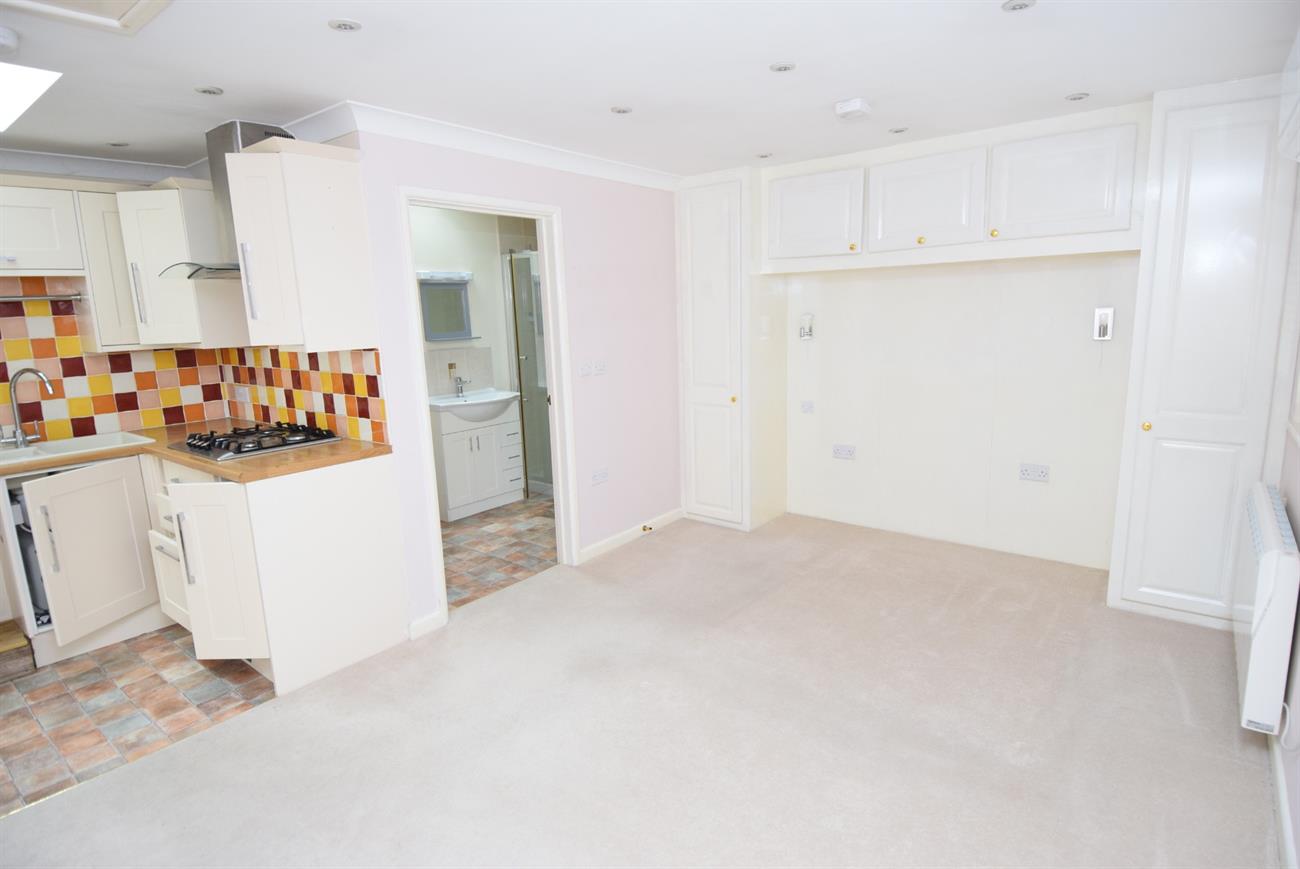 The kitchen area has a range of base, drawer and wall units, preparation work surfaces, fitted gas (bottle gas) hob with cooker hood over, one and half bowl sink unit with mixer tap, velux style window. The sitting/bedroom area has two windows to the front elevation, two electric wall heaters, and fitted wardrobes.