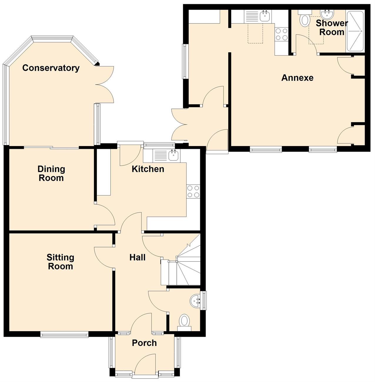 To the front of the property there is a driveway offering generous parking with the garden having gravel area, various mature shrubs and garden shed. Door to an entrance vestibule with door to the annex and door to the rear garden. The rear garden has decking, shed/workshop, summerhouse with hot tub, patio area, various mature shrubs and trees.