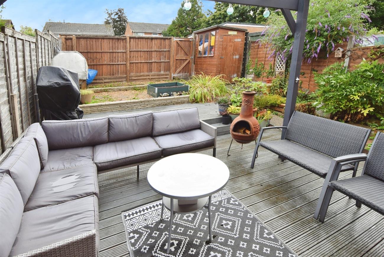 To the front of the house the garden is enclosed with path leading to the front door, gravel area, various flowers and shrubs and side gated pedestrian access to the rear garden. The rear garden has decked area with pergola, various flowers and shrubs and rear gated pedestrian access.