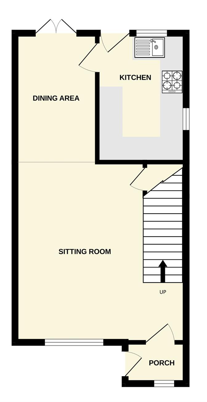 A dual aspect room with window to the front elevation, French Doors leading to the rear garden, radiator, stairs rising to the first floor, under stairs storage cupboard.