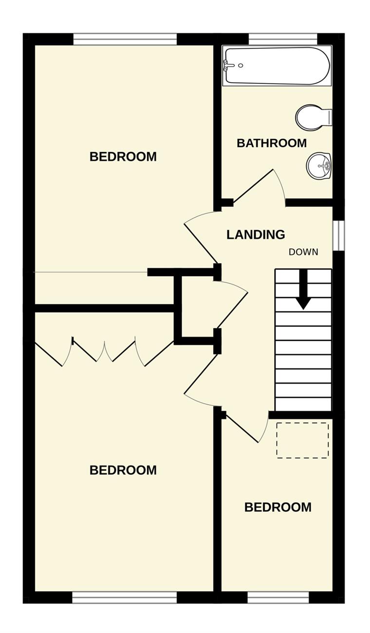 Comprising of bath with mixer tap and shower attachment, W.C., wash hand basin, window, radiator.