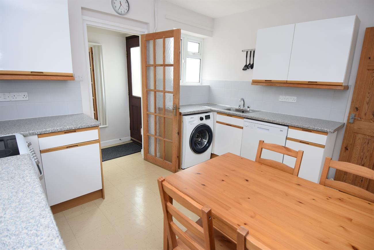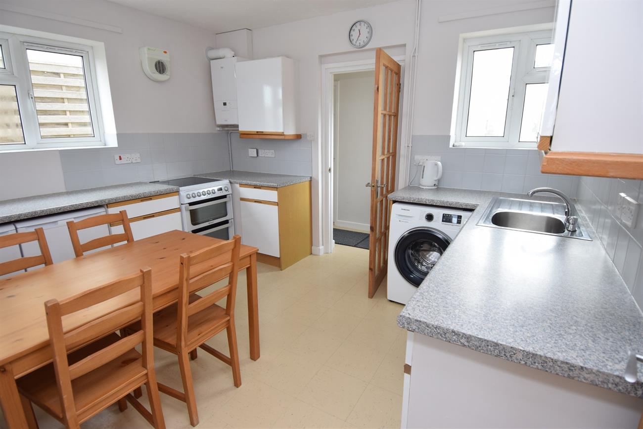 Fitted with a range of base and wall units, preparation work surfaces, stainless steel sink unit with mixer tap, plumbing for washing machine, window to the rear elevation, wall mounted gas fired boiler, window to the side elevation, radiator.