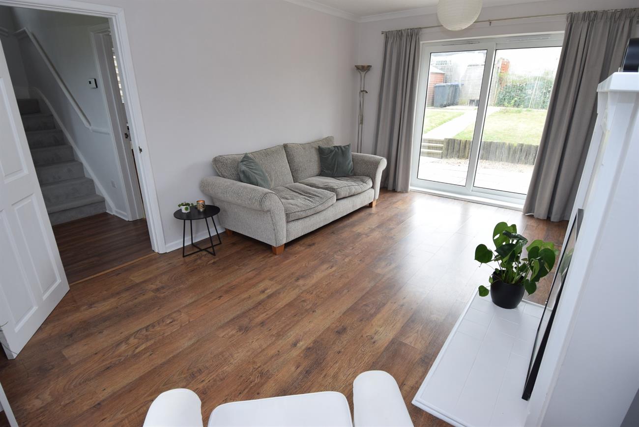 A dual aspect room with patio doors giving access to the rear garden, window to the front elevation, radiator.