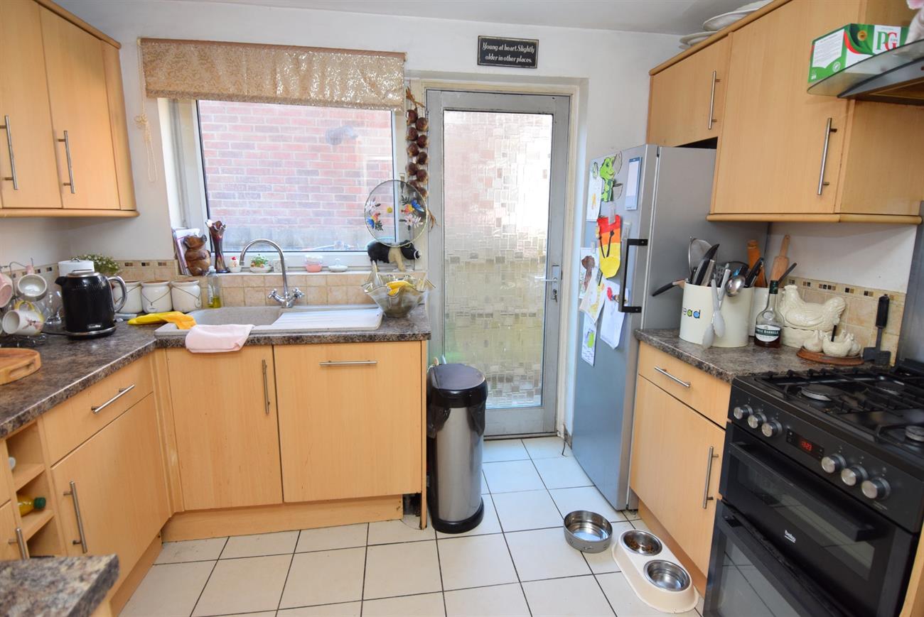Fitted with a range of base and wall units, preparation work surfaces, sink unit with mixer tap, cooker hood, window to the side elevation, door giving access to the side of the house.