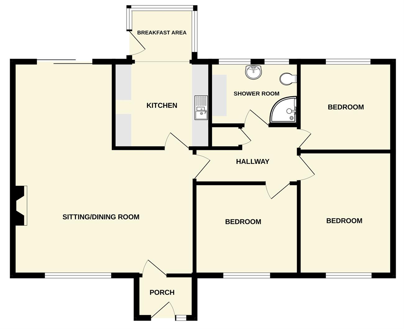 A deceptively spacious bungalow situated in an elevated position with stunning countryside views to the front elevation. The accommodation provides entrance porch, sitting room/dining room with patio doors to the rear garden, kitchen/breakfast room, inner hall, three bedrooms and a shower room. The property is warmed by oil fired central heating. Outside, to the front the open plan garden is mainly laid to lawn and there is a driveway offering parking that in turn leads to the garage. The rear garden is enclosed and features various patio areas, steps leading to the lawn area with various shrubs, trees and flower borders, garden shed, oil tank and side gated pedestrian access to the front. An internal viewing is essential to appreciate the accommodation this home offers and the stunning views.