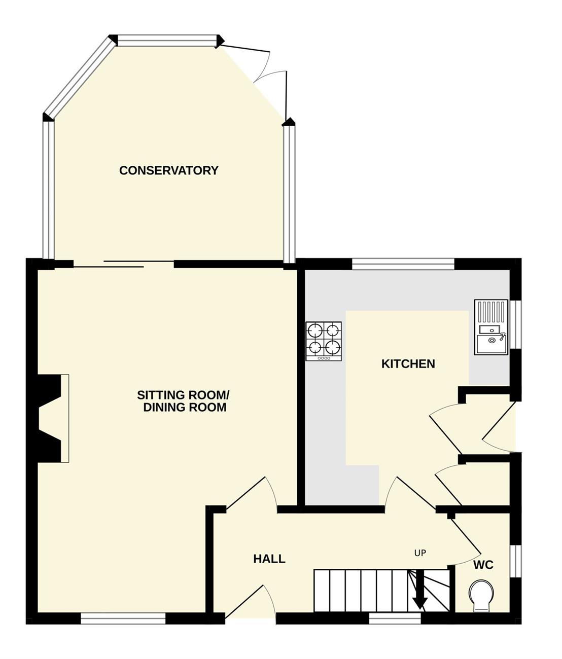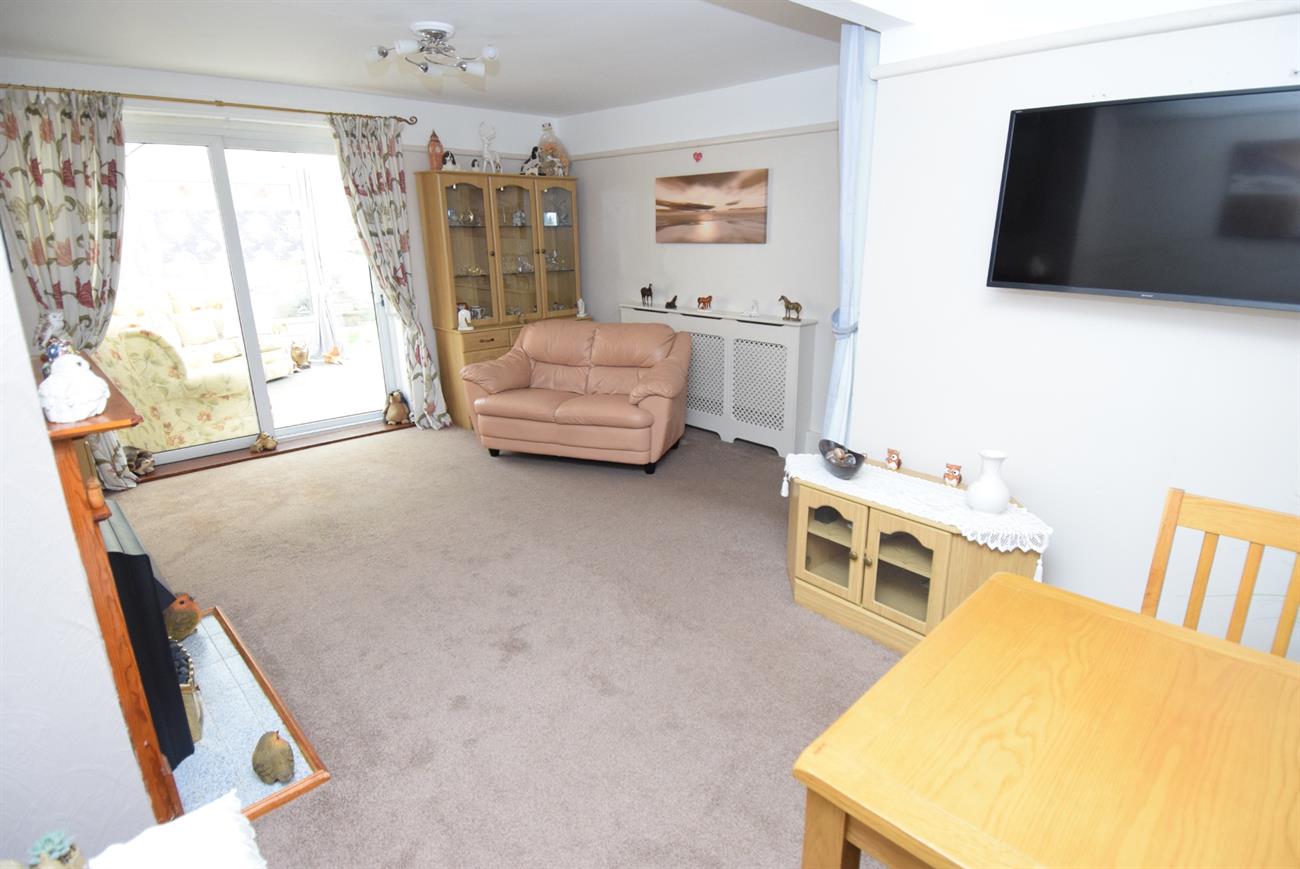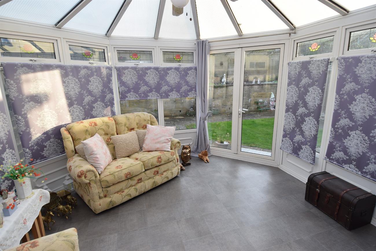 A generous size room with feature fireplace, window to the front elevation, radiator, patio doors giving access to the conservatory.