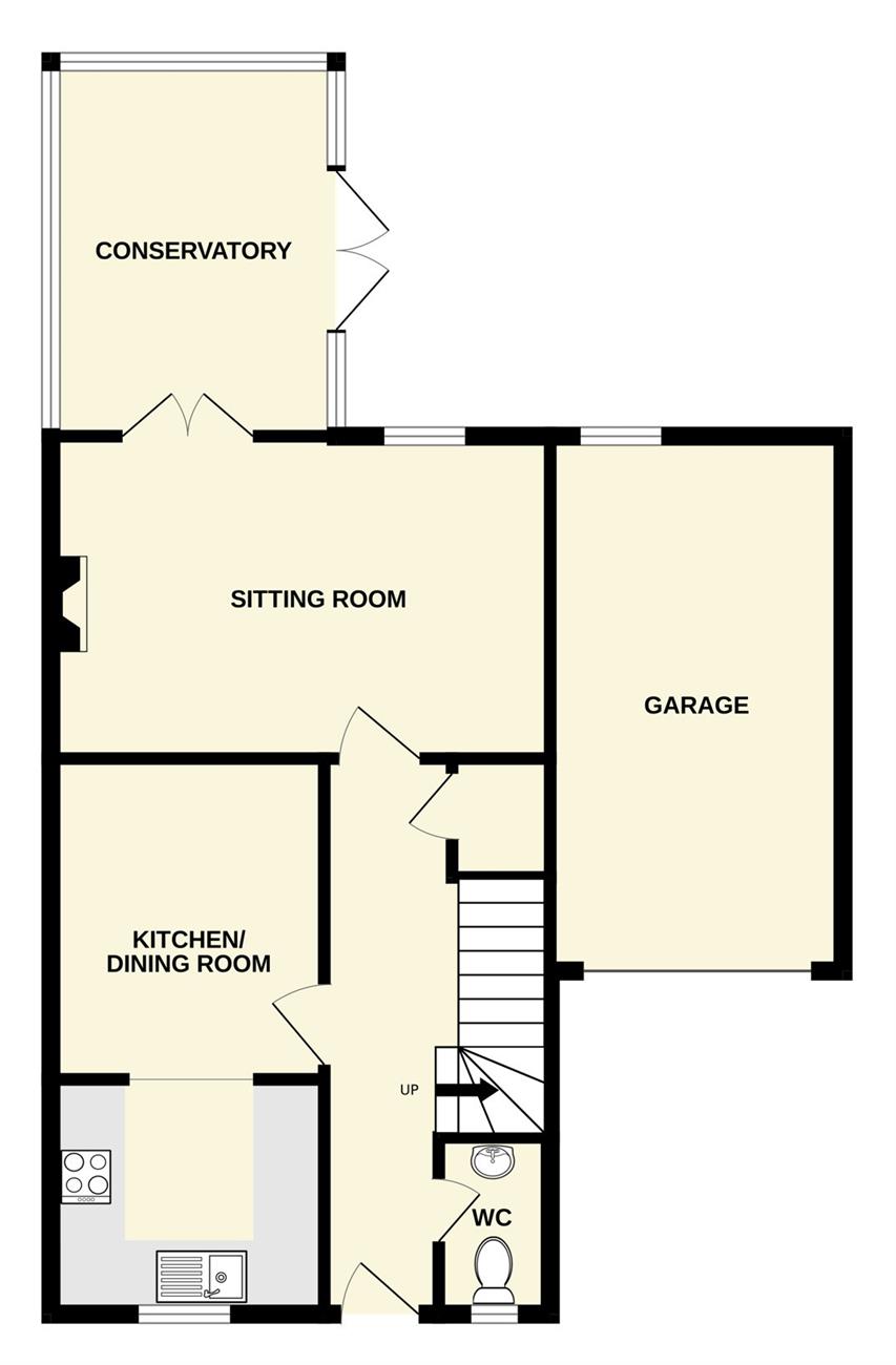 Feature open fireplace, radiator, window to the rear elevation, French Doors leading to the conservatory.