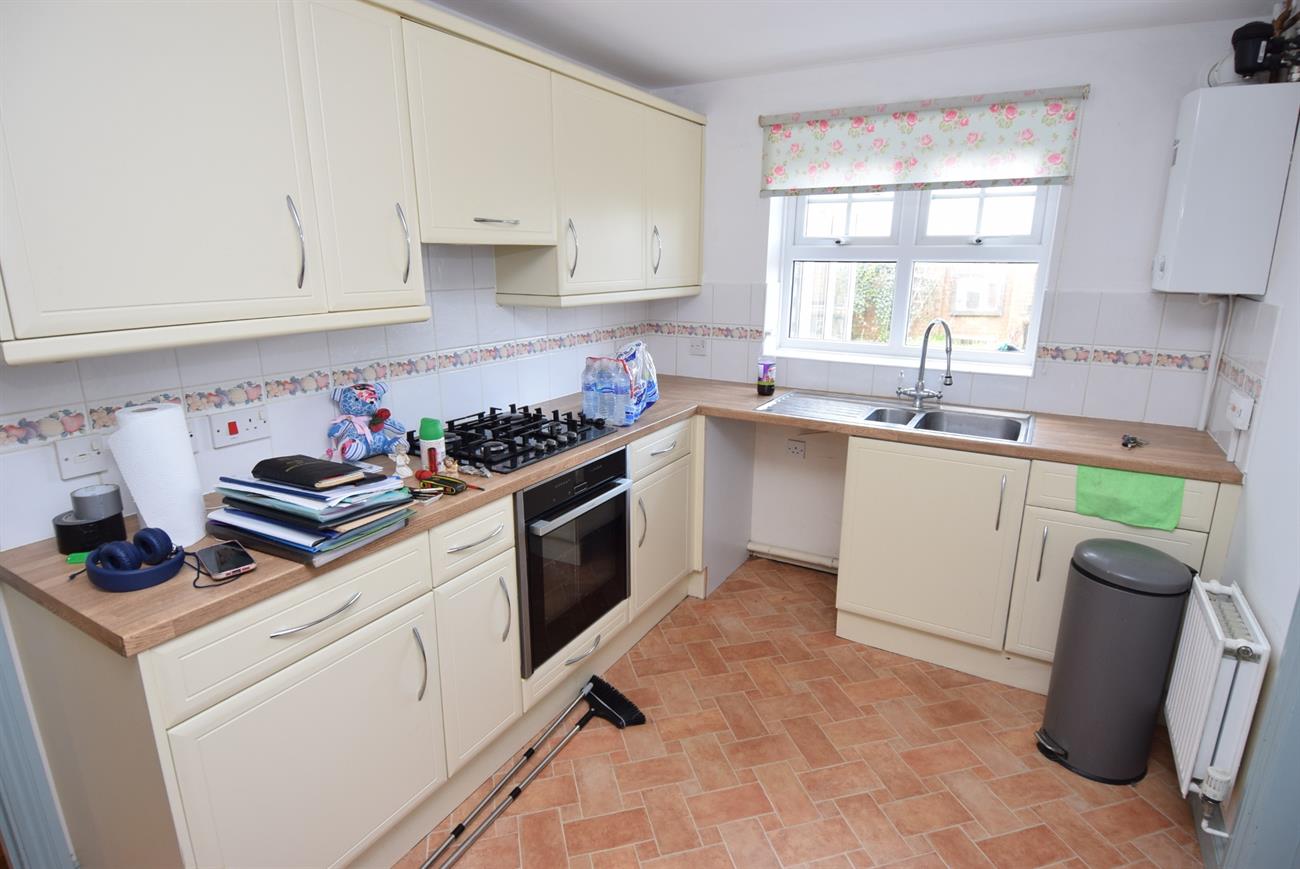 Fitted with a range of base and wall units, preparation work surfaces, fitted gas hob with cooker hood over, built-in electric oven, one and half bowl stainless steel sink unit with mixer tap, plumbing for dishwasher, wall mounted Worcester gas fired boiler, window to the rear elevation, radiator.