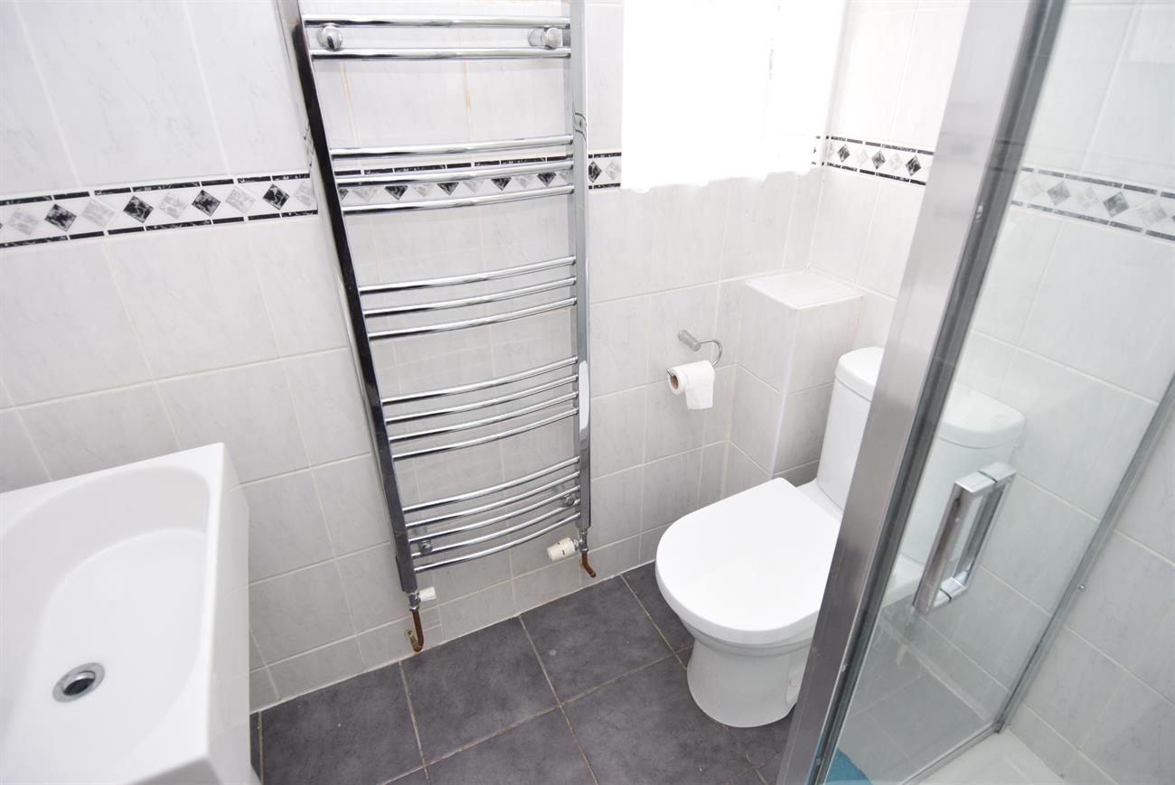 Comprising of shower cubicle, wash hand basin, W.C., ladder rack style radiator, window.