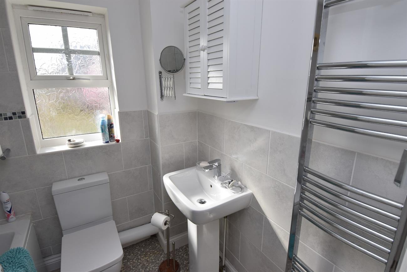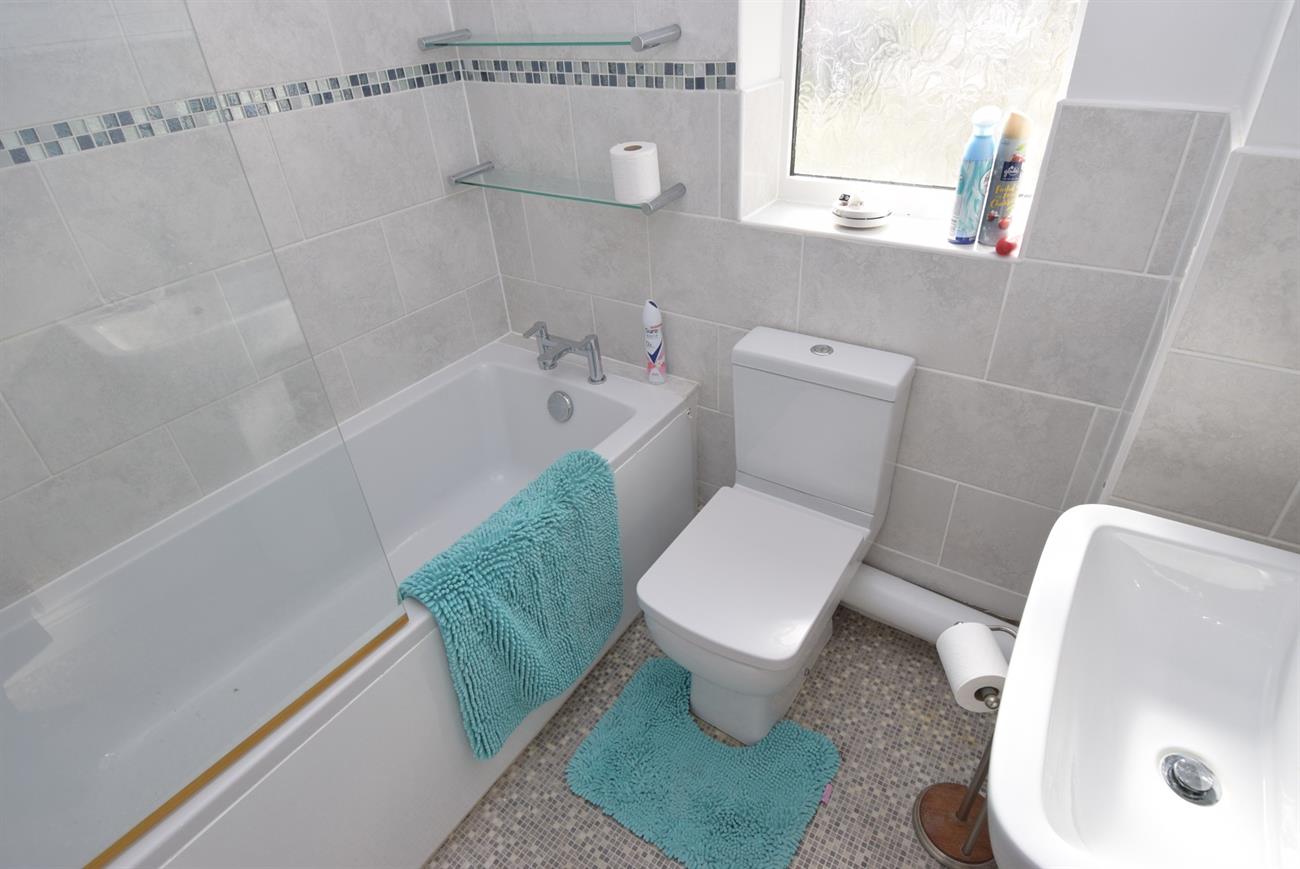 Comprising of bath with mixer tap, Mira shower over and shower screen, wash hand basin with mixer tap, W.C., ladder rack style radiator, window.
