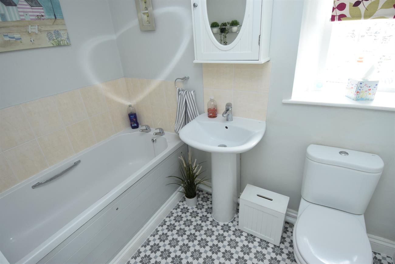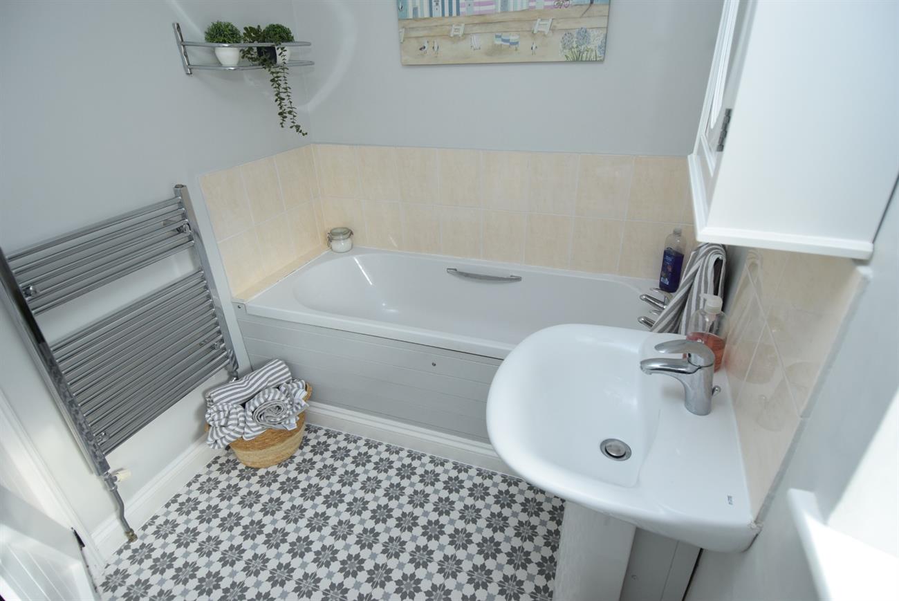 Comprising of bath, W.C., wash hand basin, ladder rack style radiator, window.