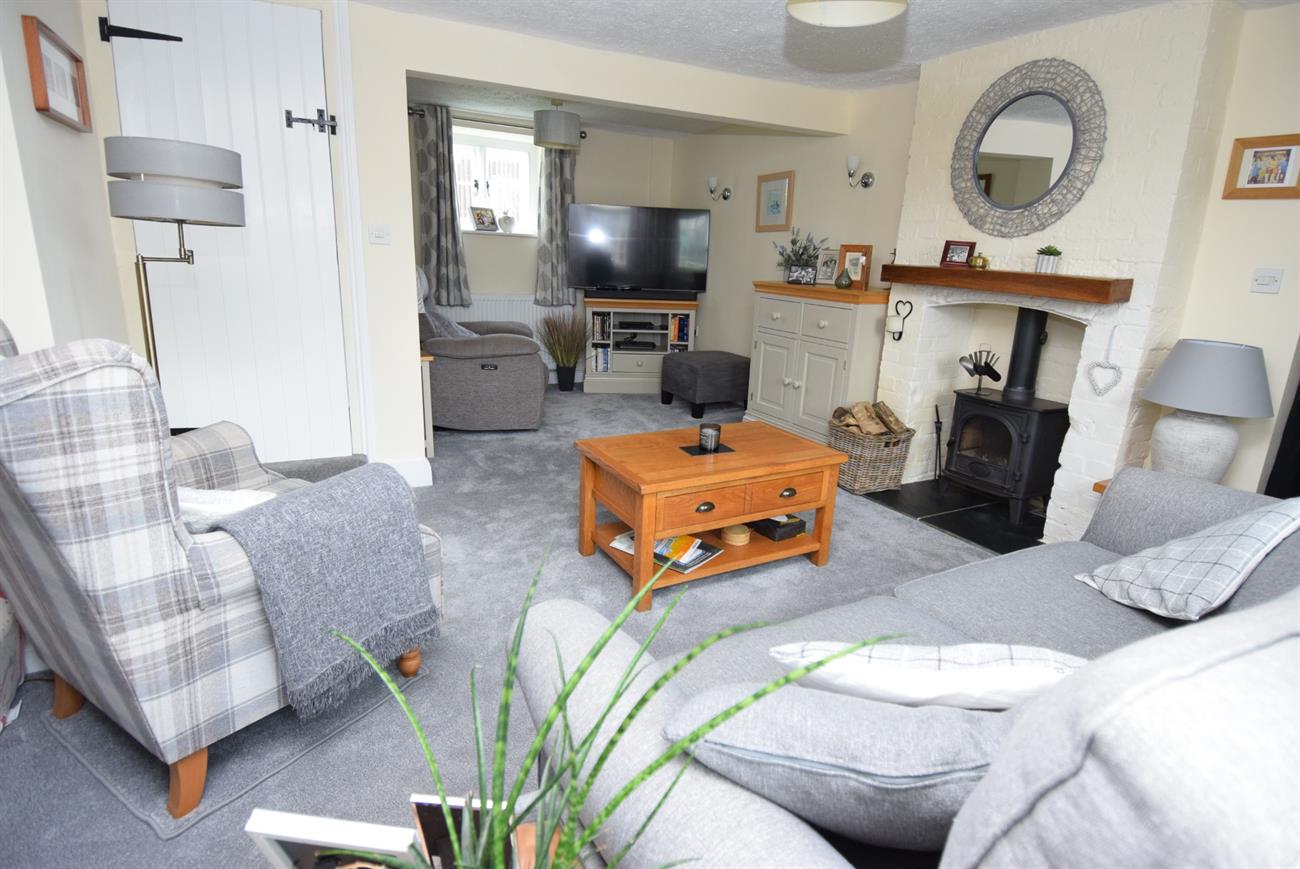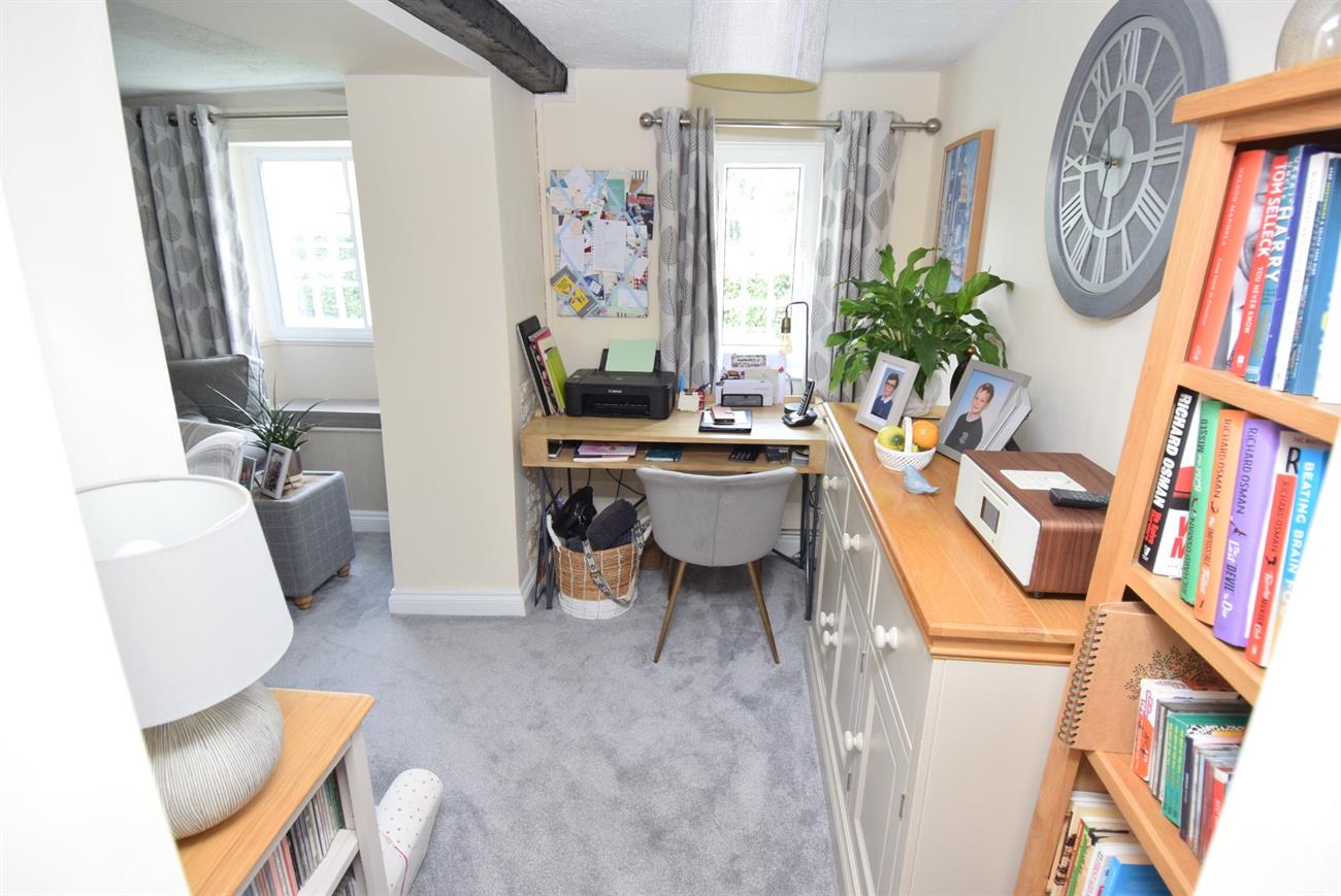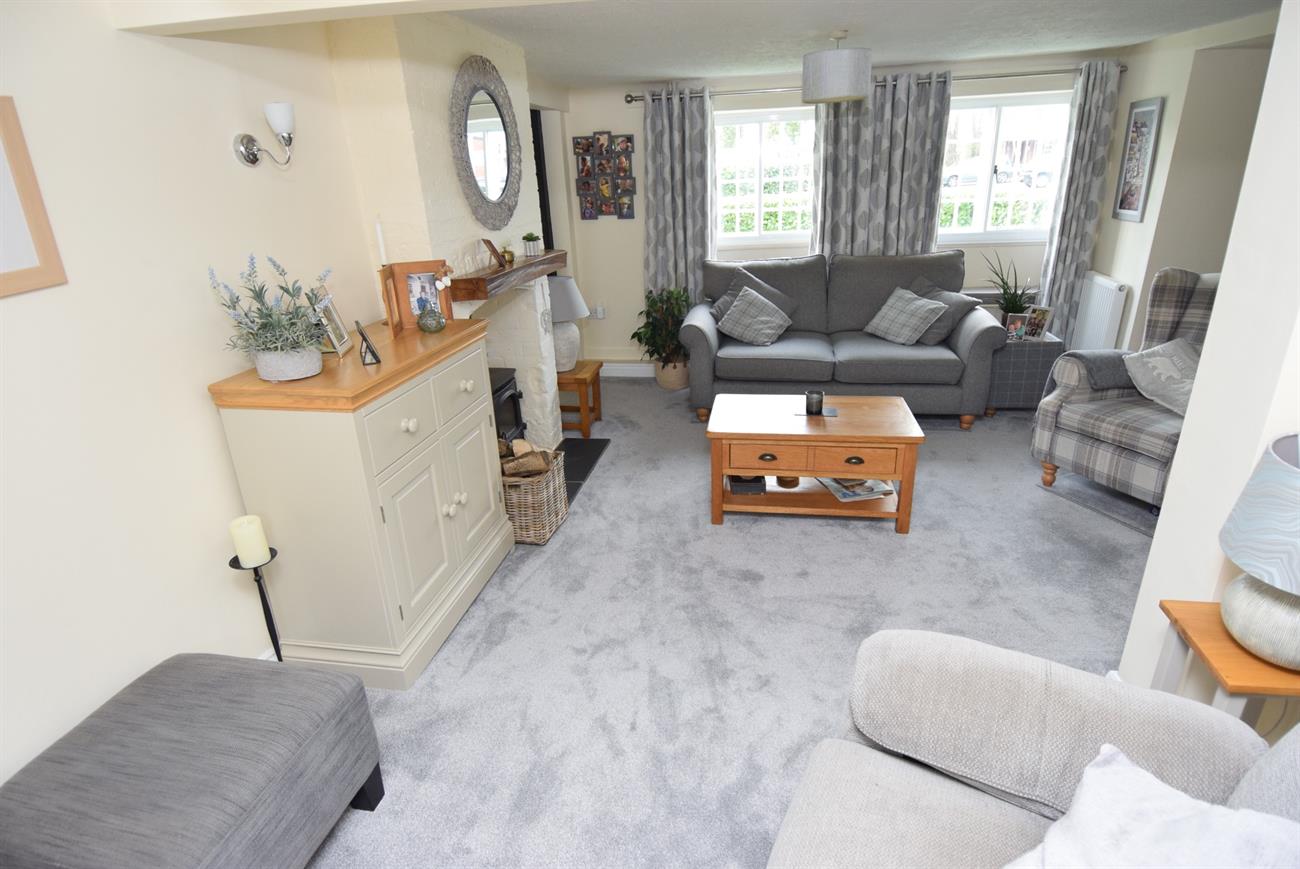 A lovely dual aspect room with feature log burner, two window seats, two radiators, under stairs recess for storage, door to the stairs rising to the first floor, opening to the study area.