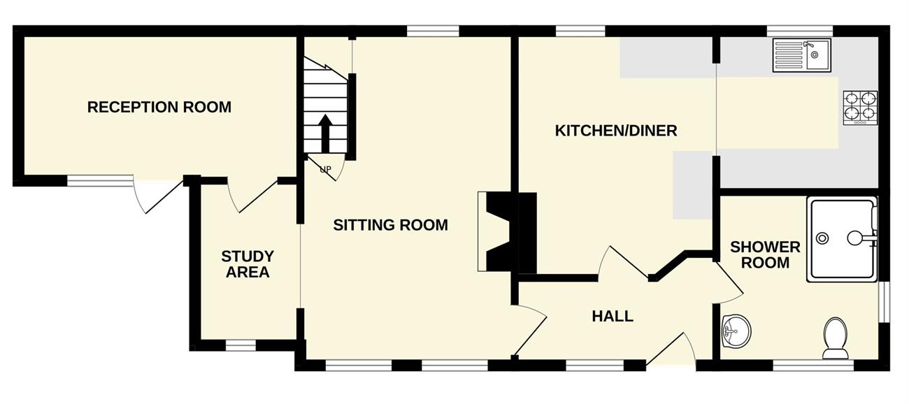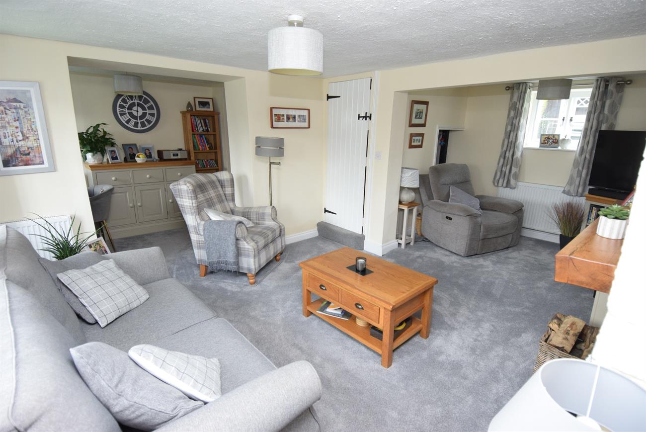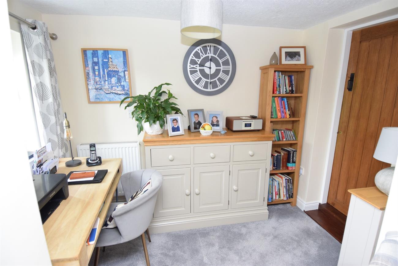 A lovely dual aspect room with feature log burner, two window seats, two radiators, under stairs recess for storage, door to the stairs rising to the first floor, opening to the study area.