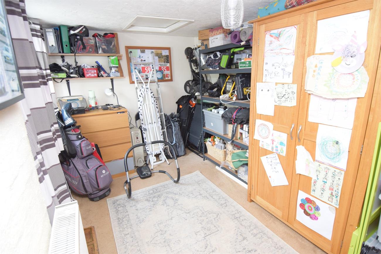 A useful room currently used as a storage room that was converted from the garage with window to the front elevation and radiator.