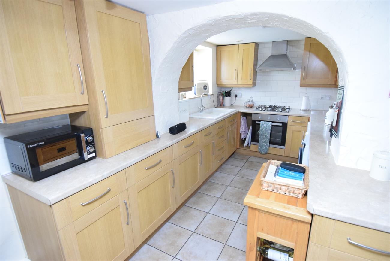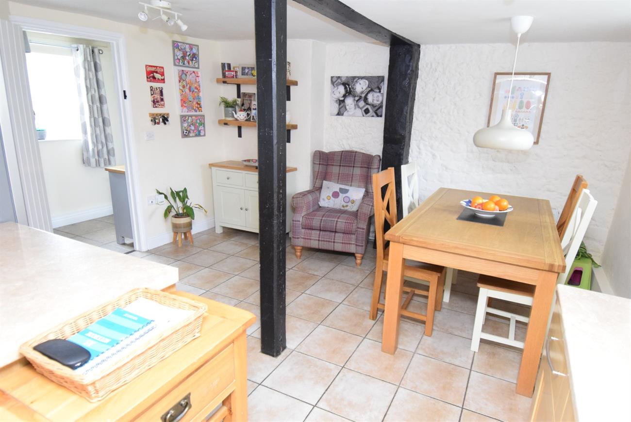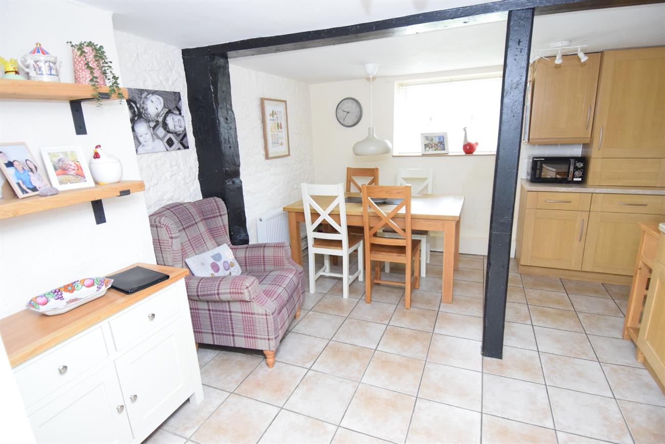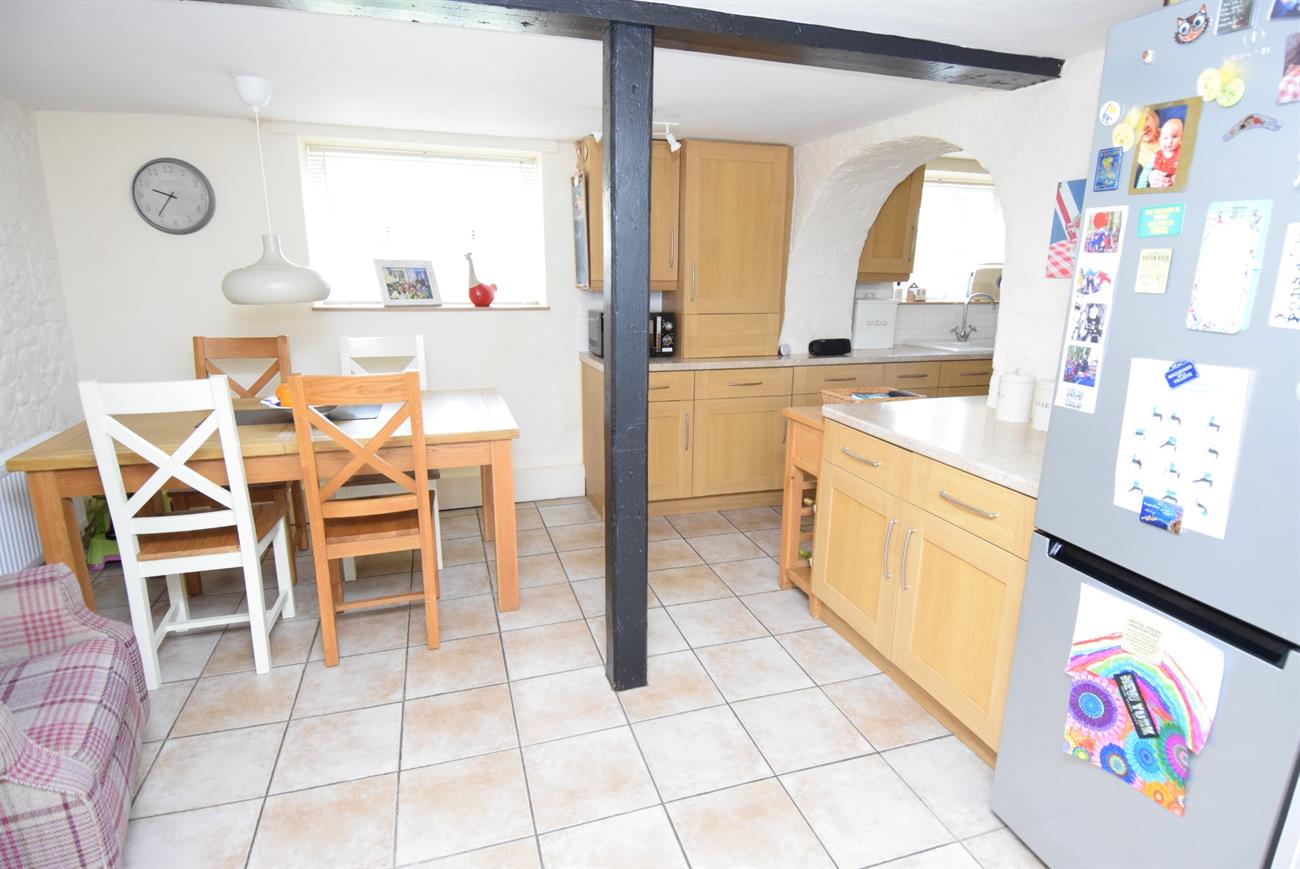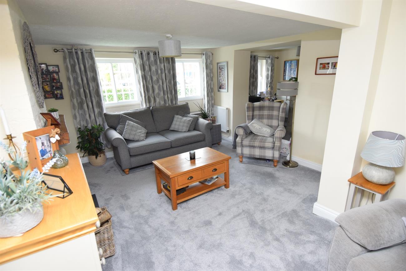 An generous size L-shaped room with a lovely dining area having radiator and window to the rear elevation. The kitchen area has a range of base and wall units, preparation work surfaces, fitted gas hob with cooker hood over, built-in oven, plumbing for washing machine and dishwasher, sink unit with mixer tap, window to the rear elevation.