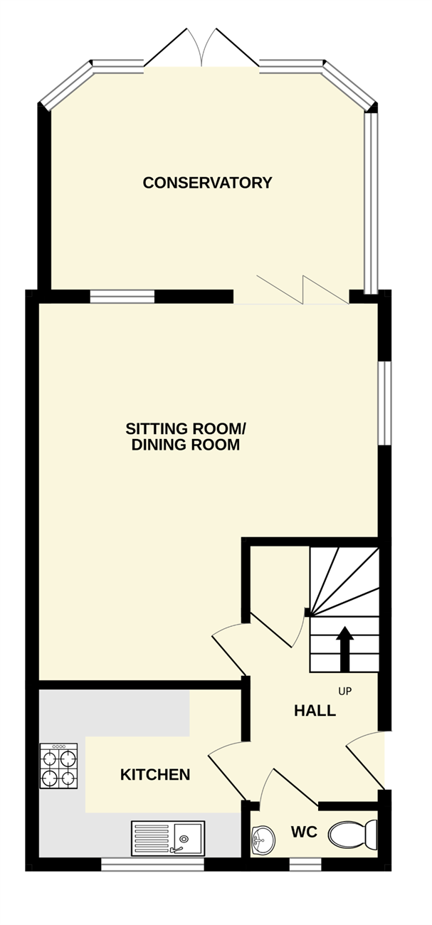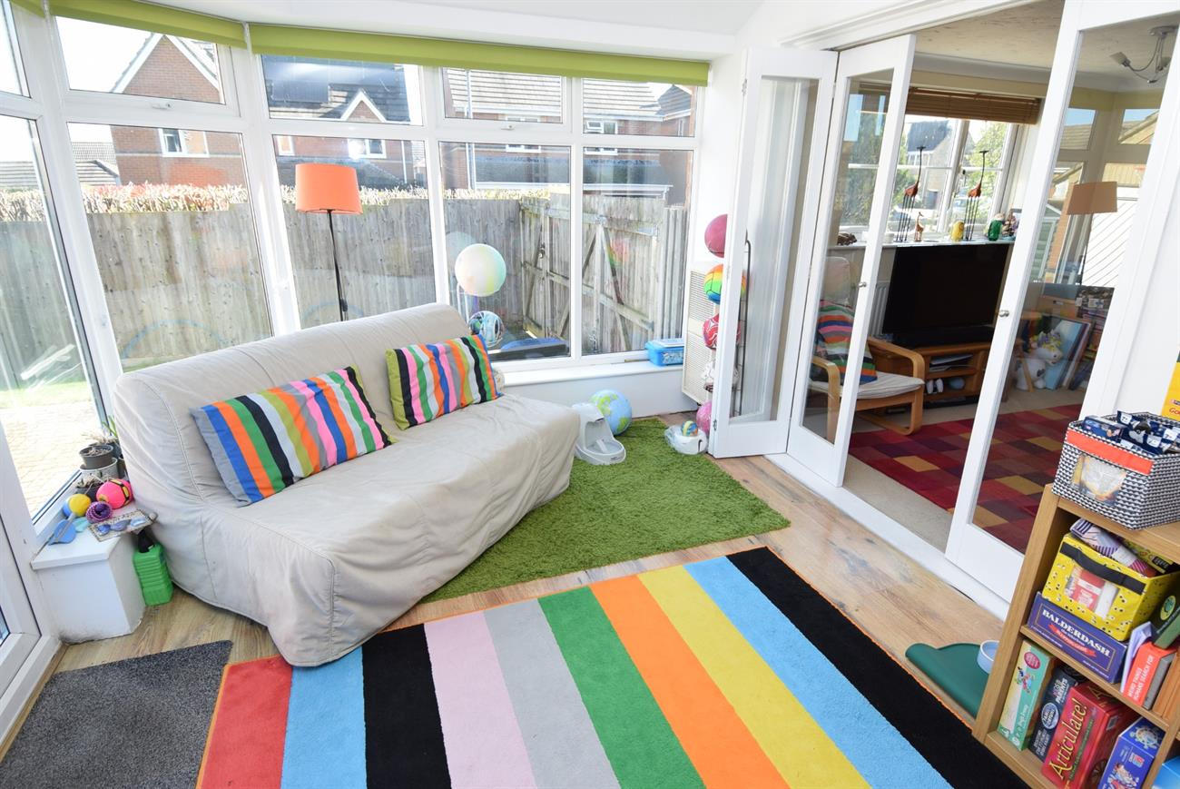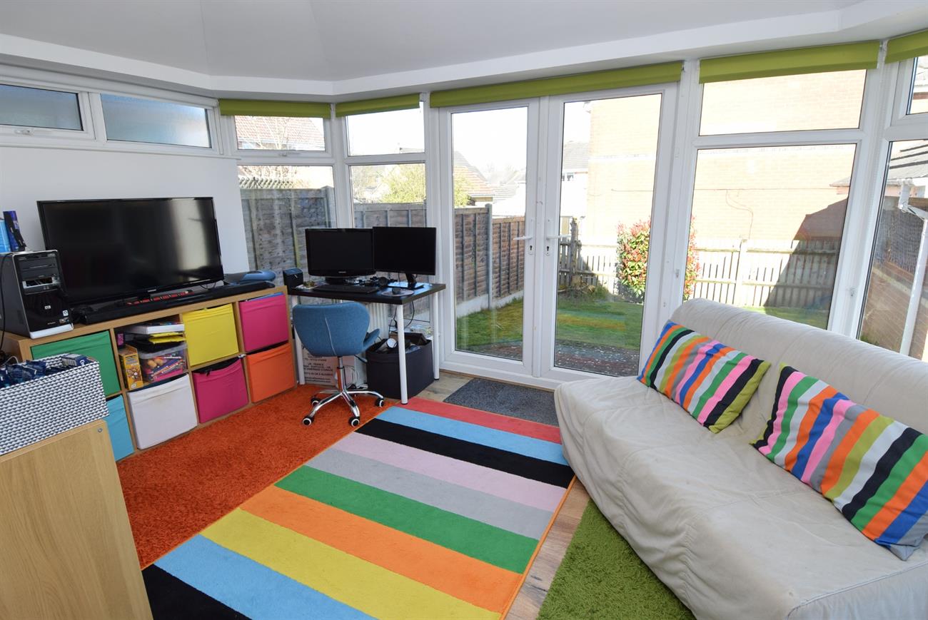 A generous size room with two windows, bi-fold doors giving access to the conservatory, two radiators.