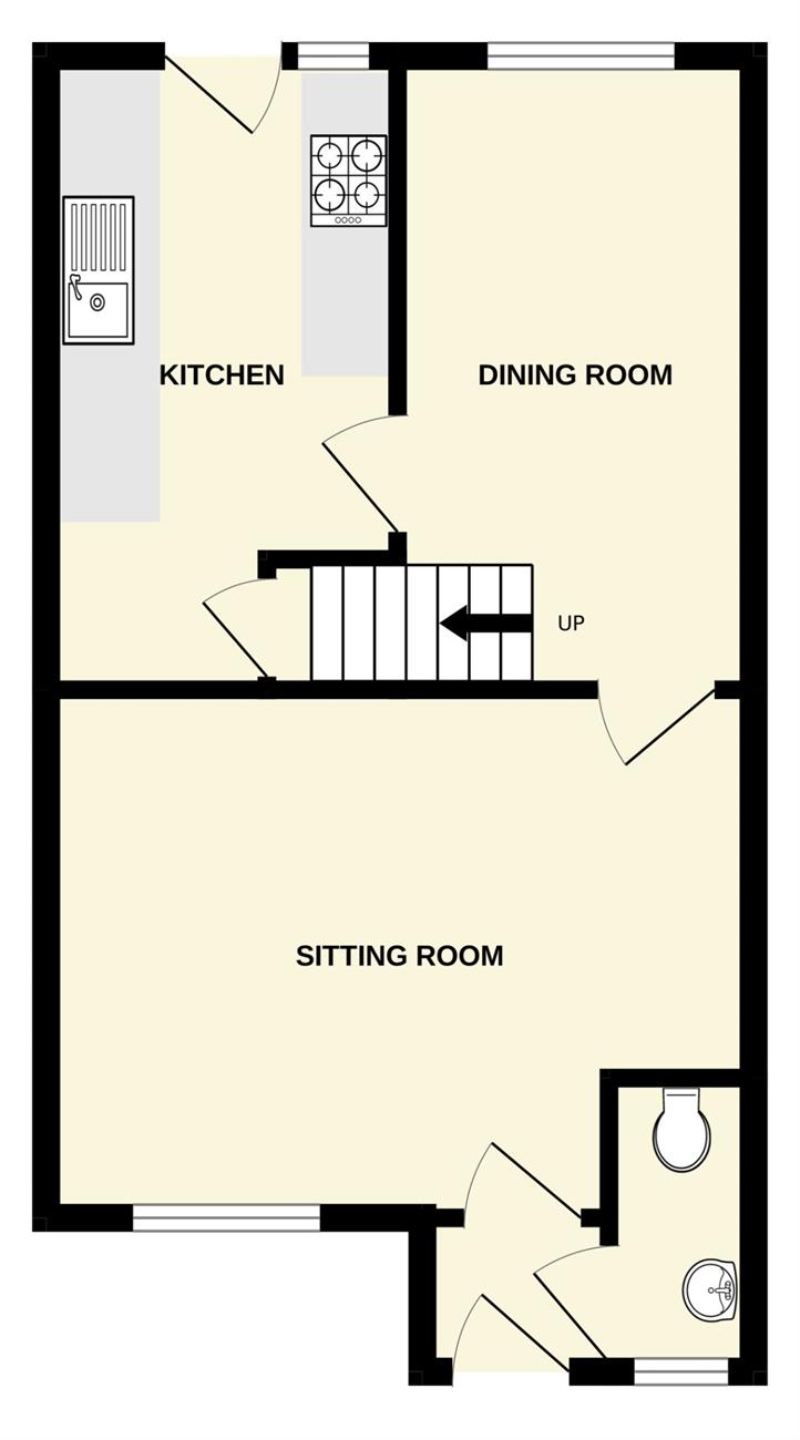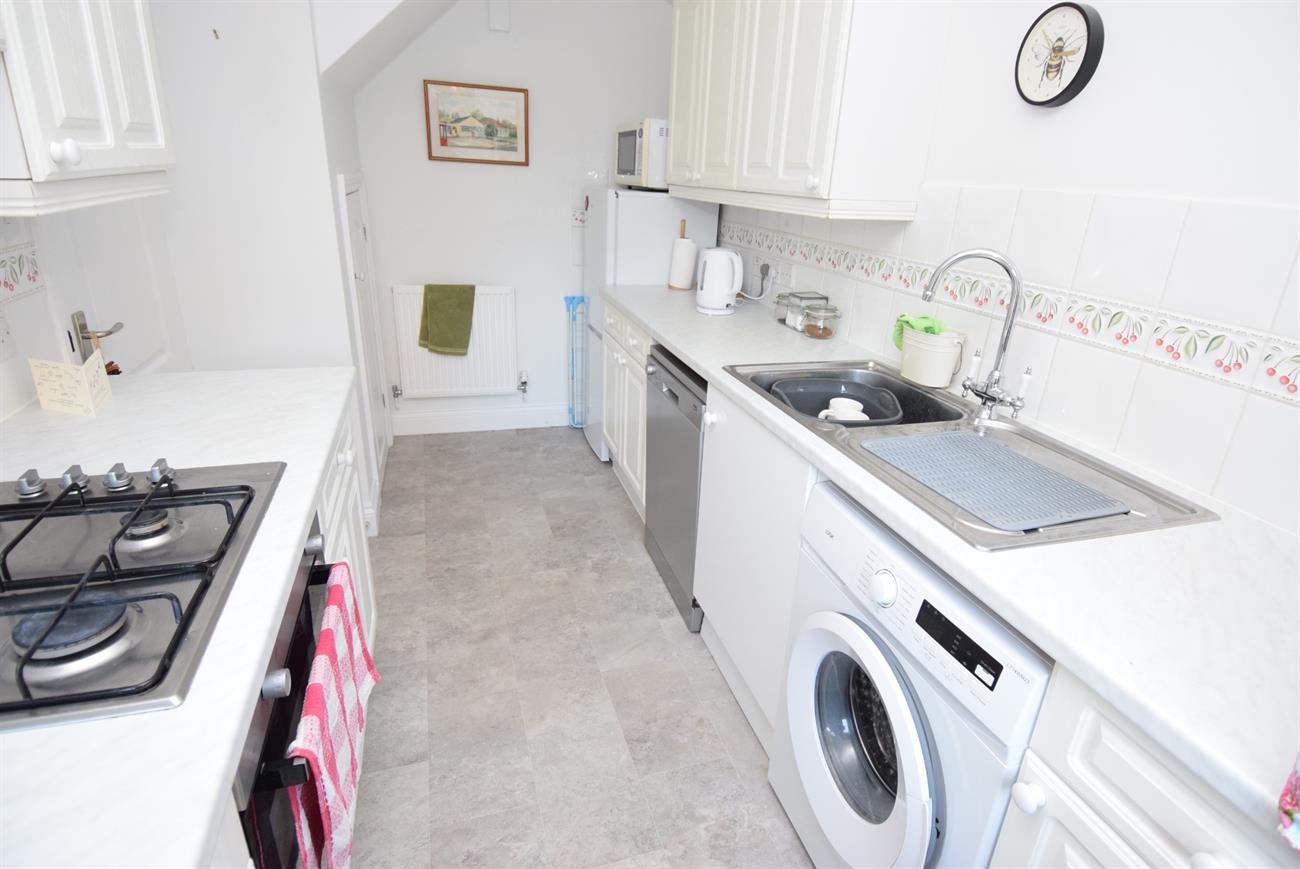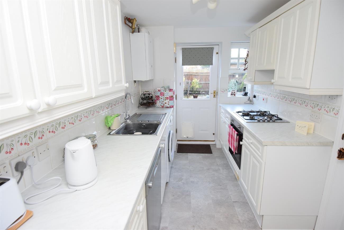 Fitted with a range of base and wall units, preparation work surfaces, fitted gas hob with cooker hood over, built-in oven, stainless steel sink unit with mixer tap, plumbing for both dishwasher and washing machine, wall mounted gas fired boiler, under stairs storage cupboard, window to the rear elevation, door giving access to the rear garden.