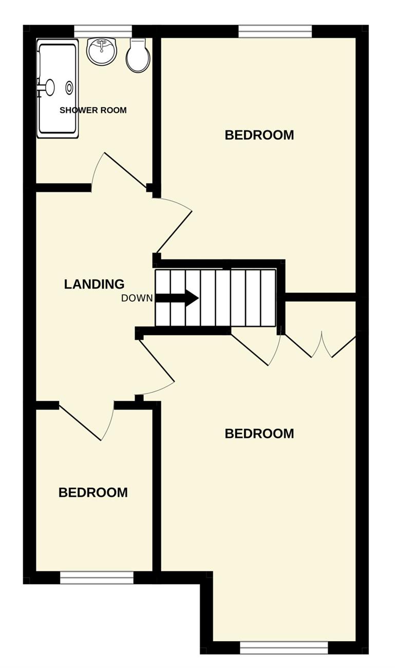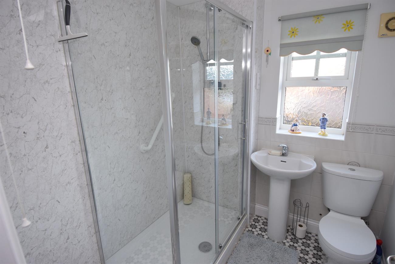 Comprising of double shower cubicle, wash hand basin, W.C., window, radiator.