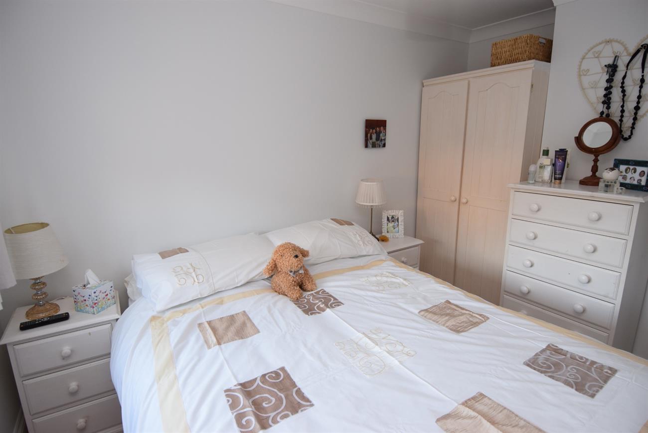 Window to the front elevation, built-in double wardrobe, airing cupboard housing hot water cylinder and slatted shelving, radiator.