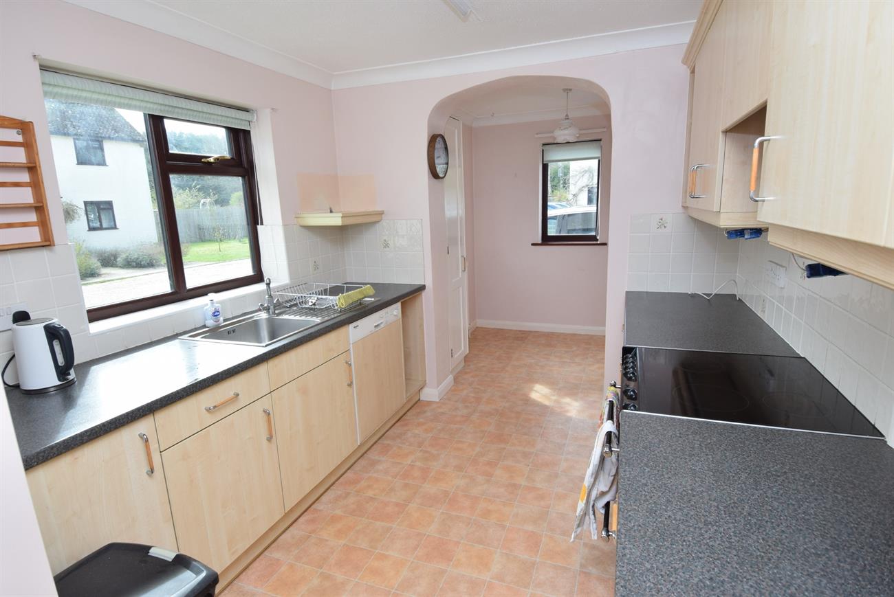 Fitted with a range of base and wall units, preparation work surfaces, stainless steel sink unit, integrated dishwasher, cooker hood, window to the front elevation, radiator, opening to the breakfast area.