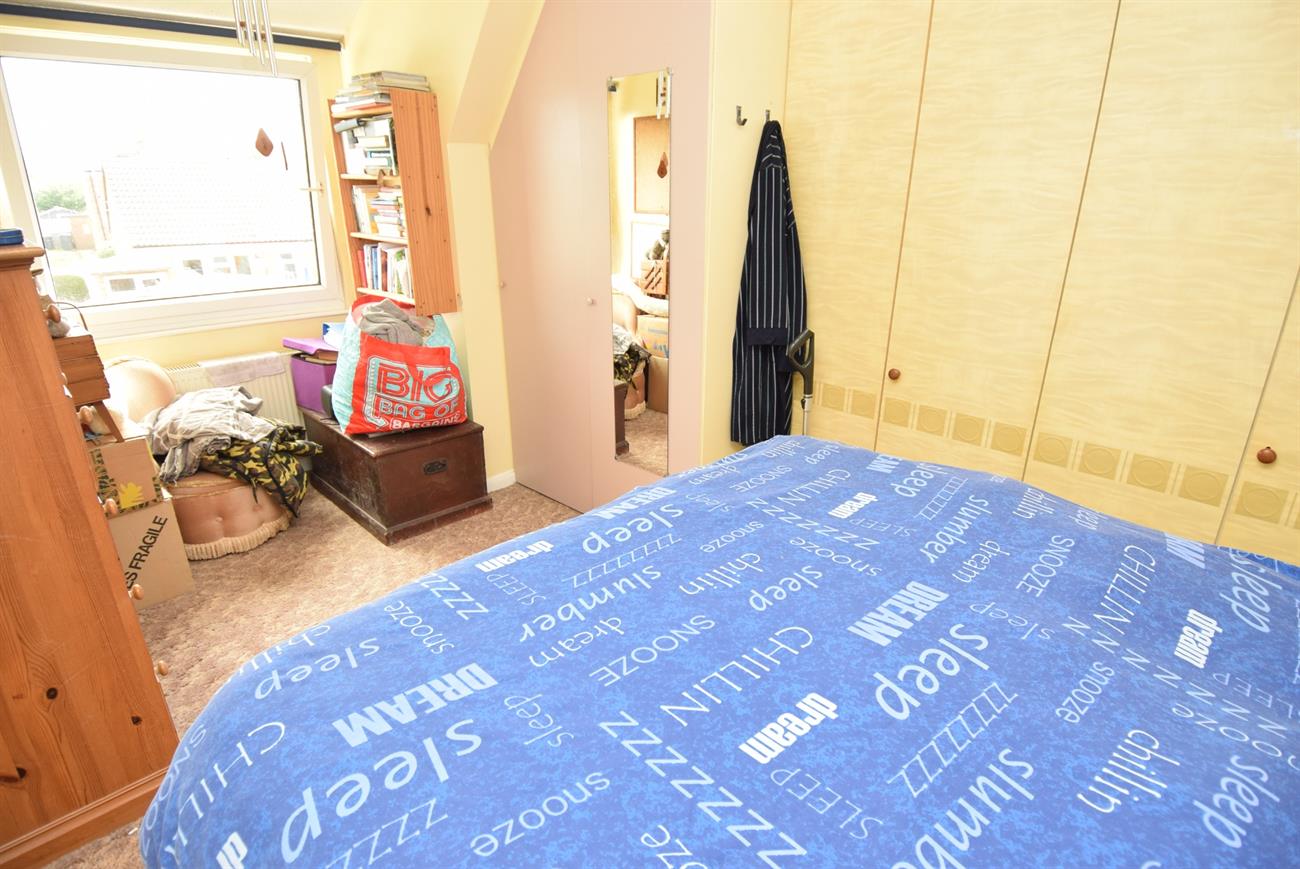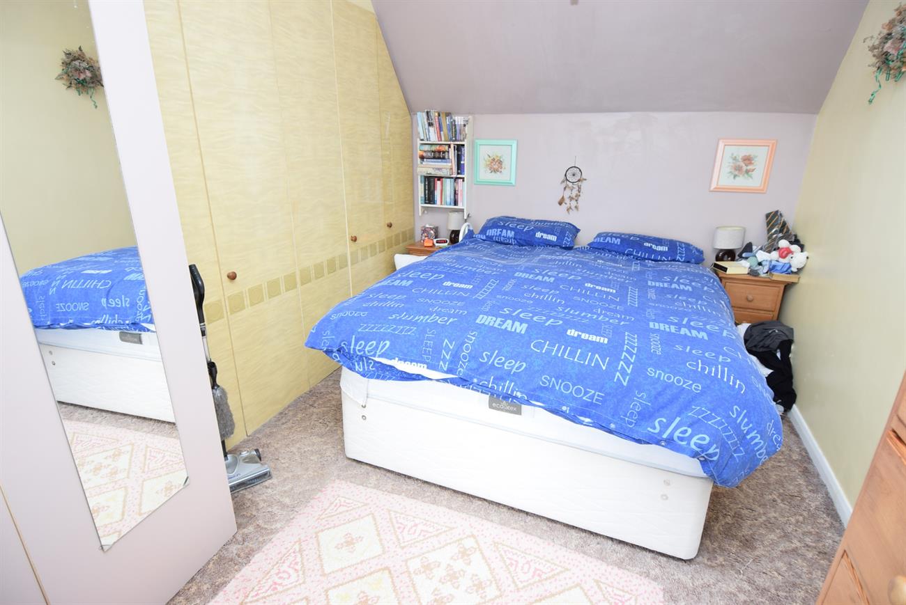 Fitted with a range of base and wall units, preparation work surfaces, stainless steel sink unit, larder cupboard, window to the rear elevation, linen cupboard with slatted shelving.