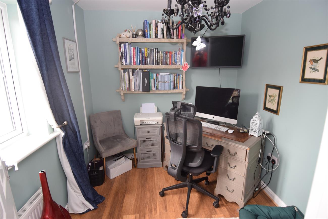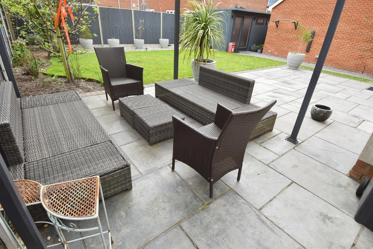 The front garden has attractive shaped brick walling and path to the front door. The drive is adjacent to the property that gives parking and access to the garage. The generous size enclosed rear garden is a striking feature having been landscaped with a good size patio area with complementary paving leading to the home office/ gym, lawn trees, water tap and side gated pedestrian access to the drive.