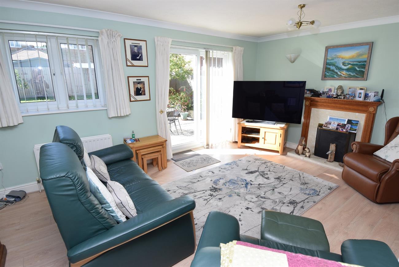 Patio doors giving access to the rear garden, feature fireplace, window to the rear elevation, two radiators.
