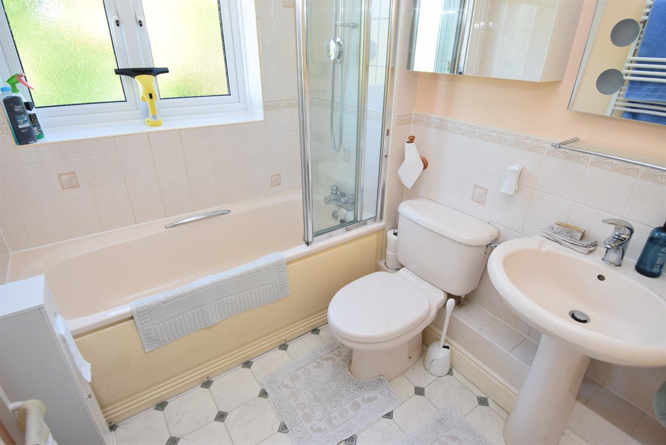 Comprising of bath with shower over, wash hand basin, W.C., window, ladder rack style radiator.