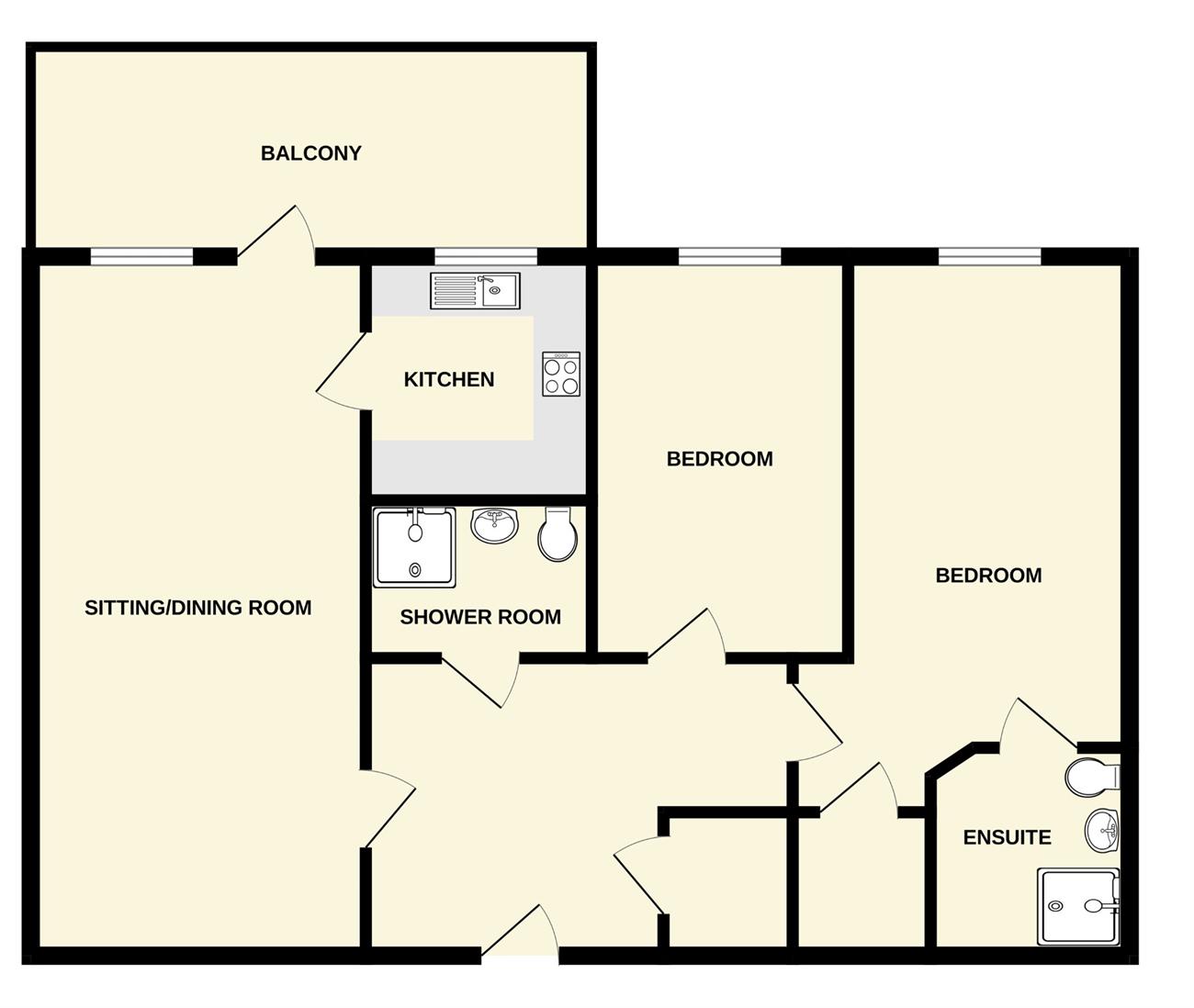 Comprising of a walk-in shower, wash hand basin set in vanity style unit, W.C., ladder rack style towel rail.