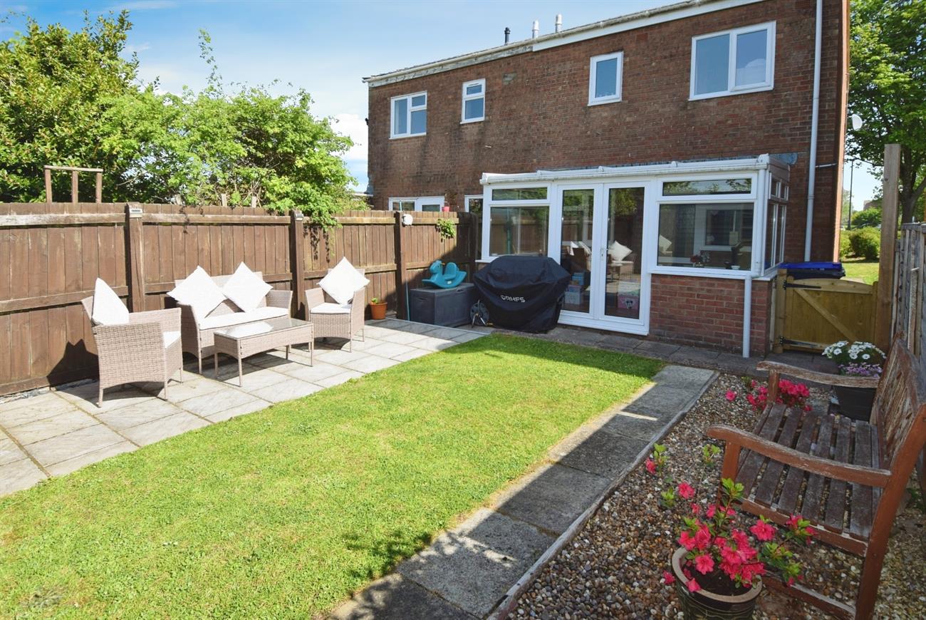 An attractive semi-detached house that has brick faced elevations under a tiled roof being warmed by gas fired central heating. The well-presented accommodation comprises of entrance hall, sitting room, fitted kitchen with dining area and a conservatory. On the first floor there are three bedrooms and a bathroom. Outside there is an open plan front garden with path to the front door. There is side gated access to the enclosed rear garden which has lawn, patio, gravel area and summer house. There is a parking area to the side of the property with allocated parking.