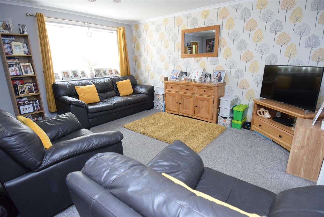 To the front of the house the open plan garden is mainly laid to lawn with path leading to the front door. The rear garden boasts patio, lawn, gravel area, summer house and side gated pedestrian access.