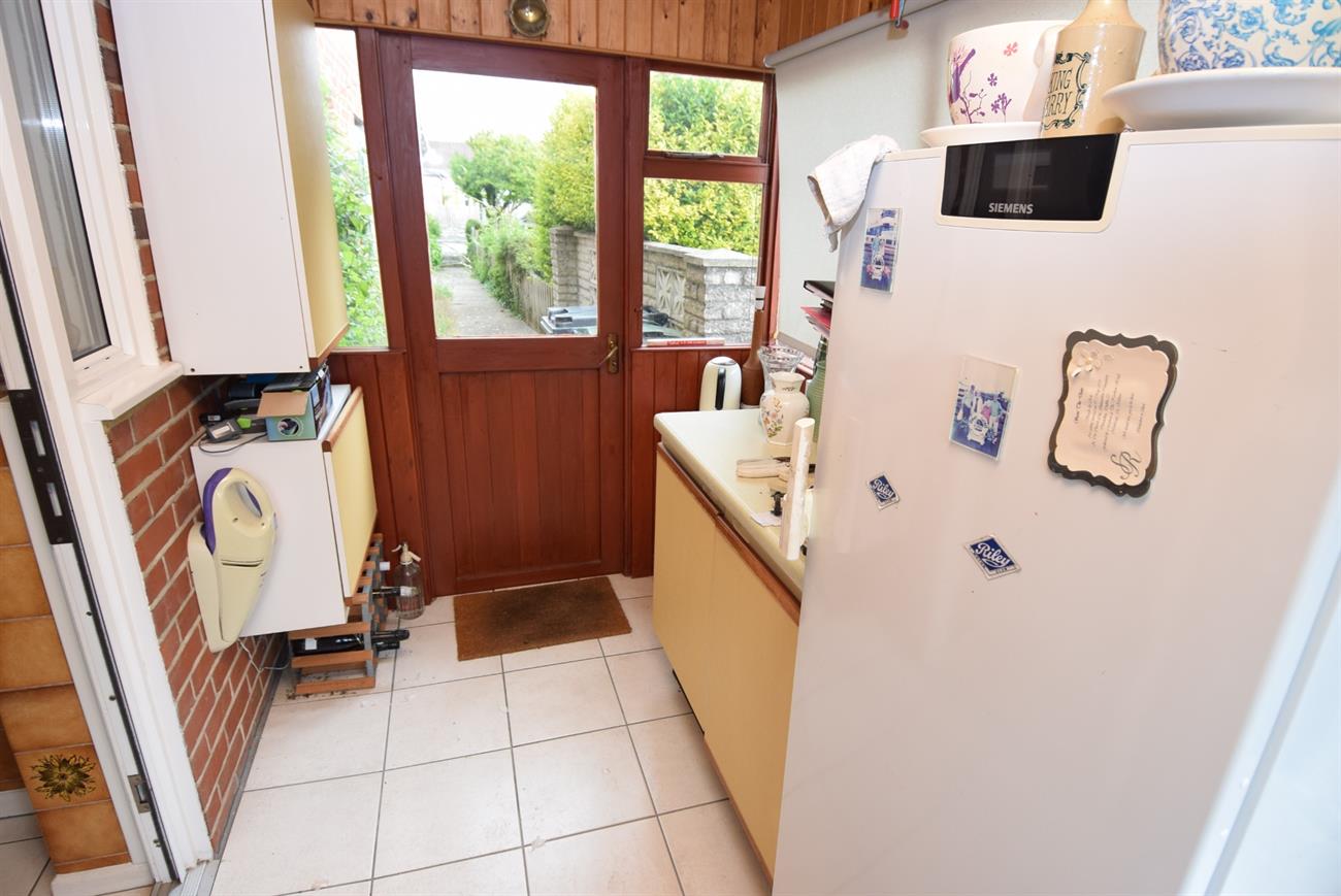 Base and wall units, preparation work surfaces, stainless steel one and a half bowl sink unit, integrated washing machine, dishwasher and fridge, double oven, electric hob with cooker hood over, shelved storage cupboard, double glazed window to the rear and two windows to the side elevation, door giving access to the side garden room/utility and door to the conservatory.