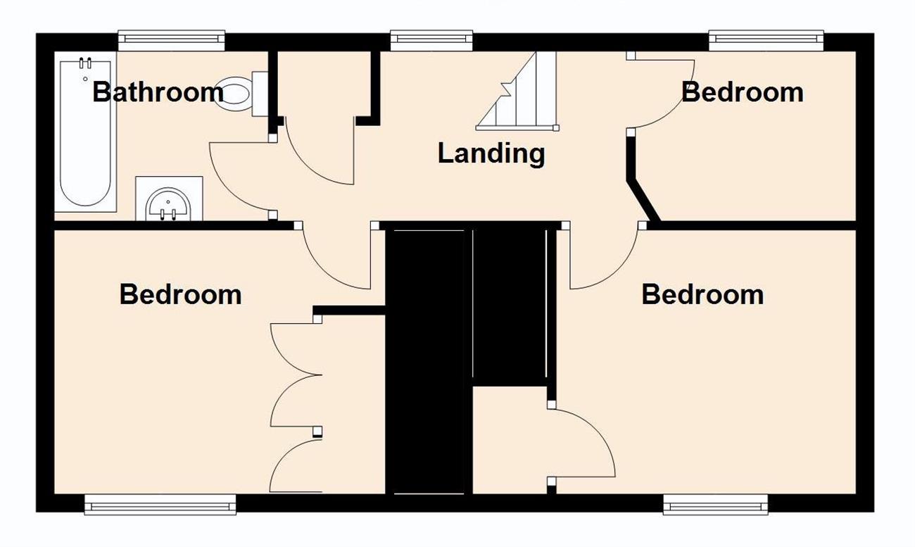 Hatch to loft space, airing cupboard housing hot water cylinder and slatted shelving.