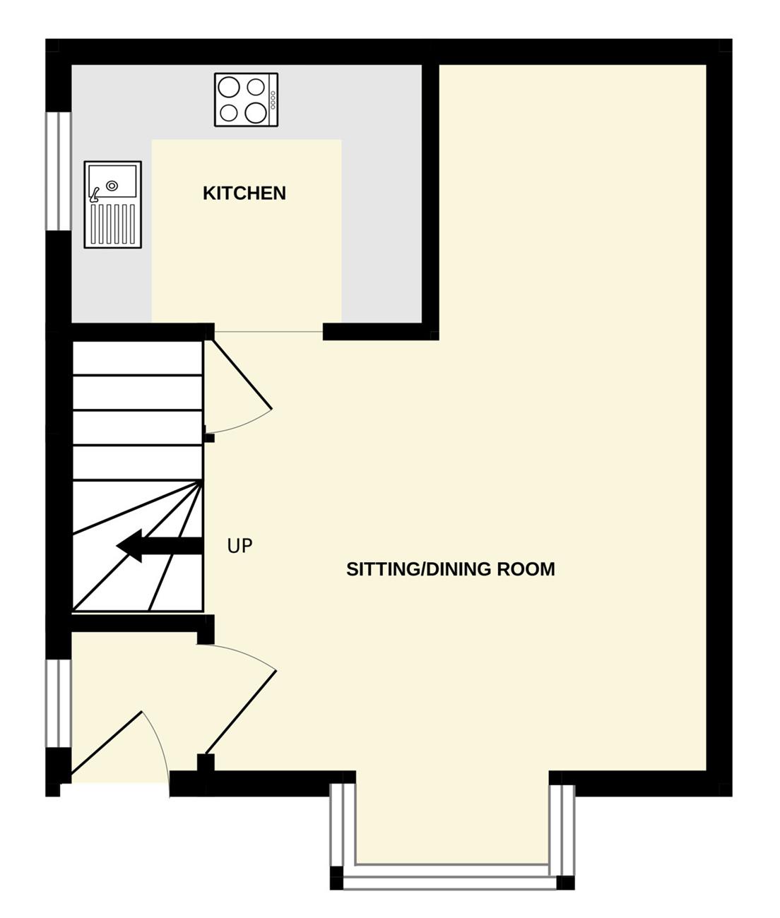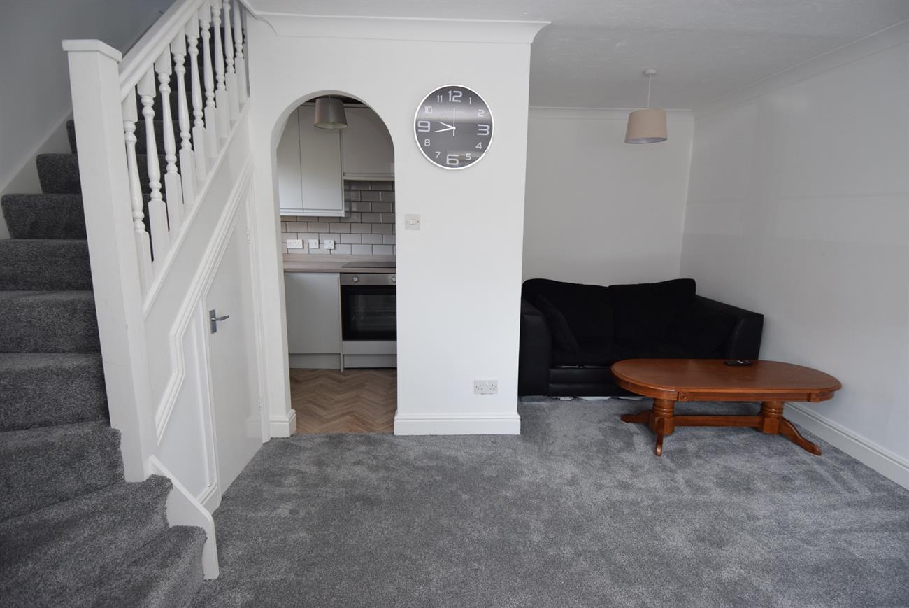 Bay window to the front elevation, two radiators, stairs rising to the first floor, under stairs storage cupboard, opening to the kitchen.