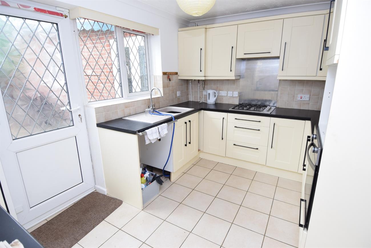 Fitted with a range of base, drawer and wall units, preparation work surfaces, integrated fridge/freezer, fitted gas hob with cooker hood over, built-in oven, plumbing for washing machine, one and a half bowl sink unit with mixer tap, radiator, window to the rear elevation, door giving access to the rear garden.