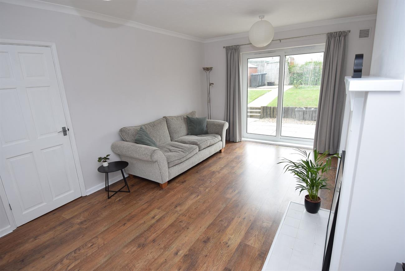 A dual aspect room with patio doors giving access to the rear garden, window to the front elevation, radiator.