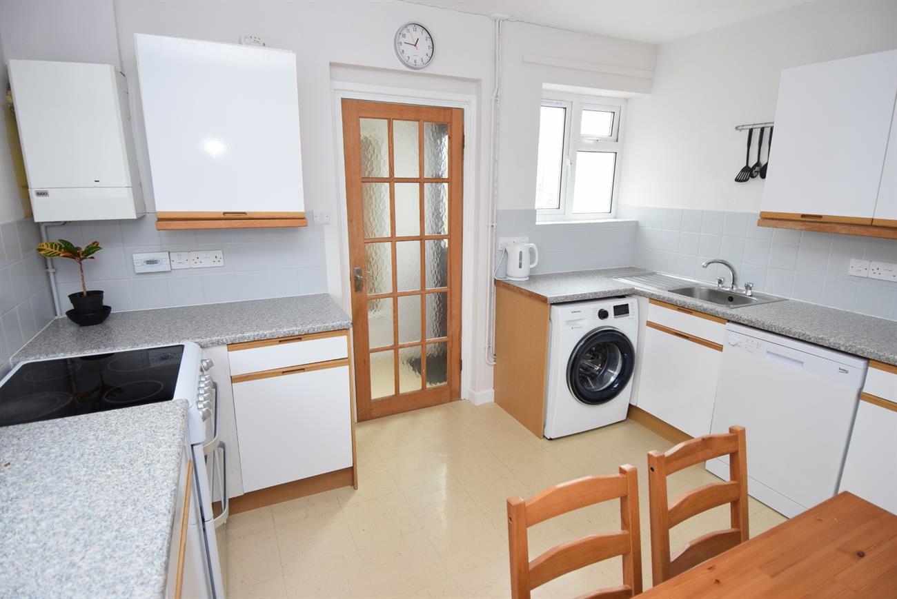 Fitted with a range of base and wall units, preparation work surfaces, stainless steel sink unit with mixer tap, plumbing for washing machine, window to the rear elevation, wall mounted gas fired boiler, window to the side elevation, radiator.